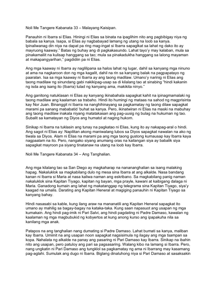 Isang taong gaya niyang may isang anak na lalaking kinabubuhusan ng boong pag-irog at mga pag-asa isang taong may pananampalataya sa Diyos na nakakaalam ng kanyang mga katungkulang dapat ganapin sa pamamayan isang taong mapagmahal sa. Mahalagang pangyayari sa Noli Me Tangere sa Kabanata 21. Napipili ang mga pangyayari sa akda na nagpapakita ng kaasalang dapat sundin ng isang tao.